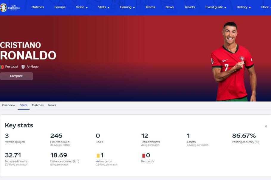 Na utakmici drugog kola protiv Turske prilikom jednog sprinta Ronaldo je razvio brzinu od čak 32,7 kilometara na sat i na taj način pokazao da su godine samo broj kada je on u pitanju.