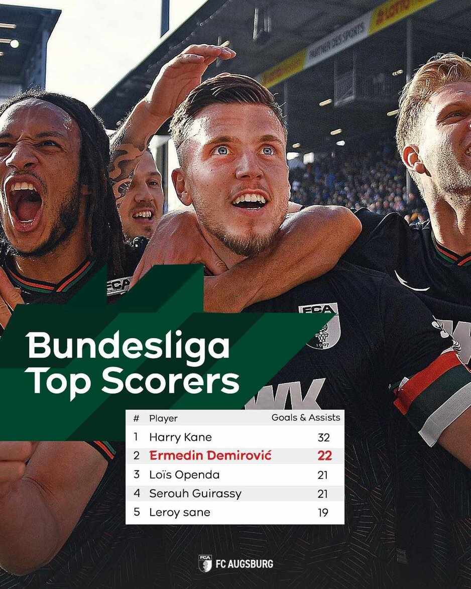 Demirović ove sezone kao kapiten Augsburga na 24 utakmice Bundeslige ima 14 golova i 8 asistencija.
