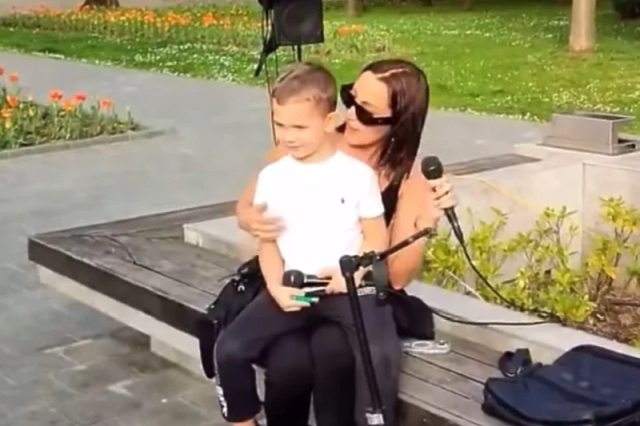 Aleksandra Prijeović zapjevala je sa sinom dječiju pjesmu na klupi u centru Banje Luke kraj poznatog banjalučkog uličnog pjevača.