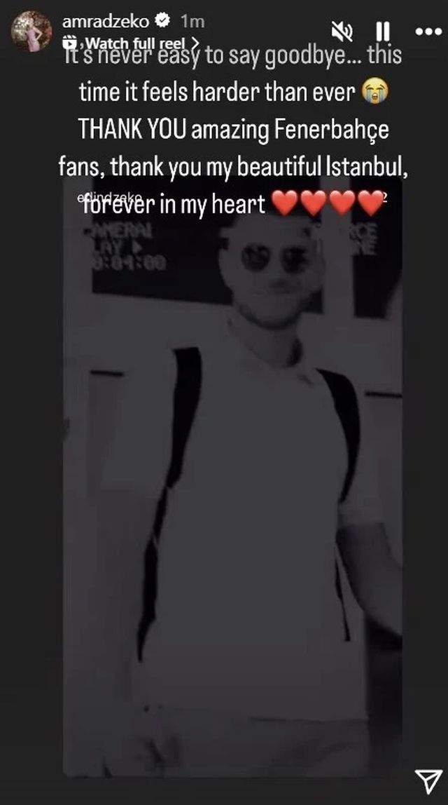 Podijelila je njegov snimak te napisala: “Nikada nije lako reći zbogom… Ovaj put je to teže nego ikada. Hvala vam, divni fanovi Fenerbahčea, hvala ti, moj divni Istanbule. Zauvijek u mom srcu”.