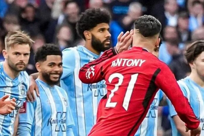 Mlada brazilska zvijezda Manchester Uniteda Antony na meti je kritika engleske javnosti zbog sramnog gestikuliranja tokom slavlja teško izborenog izbacivanja drugoligaša Coventryja u FA Cupu.