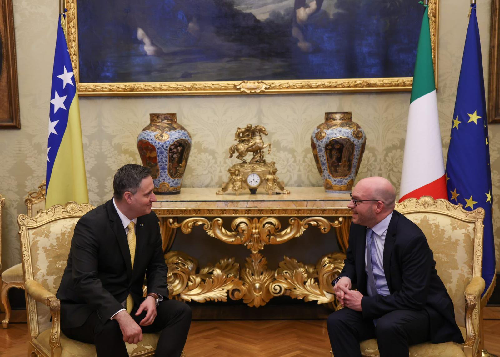 Predsjedavajući Predsjedništva BiH dr. Denis Bećirović je istakao važnost jačanja odnosa Bosne i Hercegovine s Republikom Italijom, članicom i zemljom osnivačem EU i NATO-a. Također, Italija je članica niza regionalnih inicijativa, poput Jadransko-jonske inicijative, strategije EU za Jadransko-jonsku regiju (EUSAIR), Srednjoevropske inicijative (CEI).