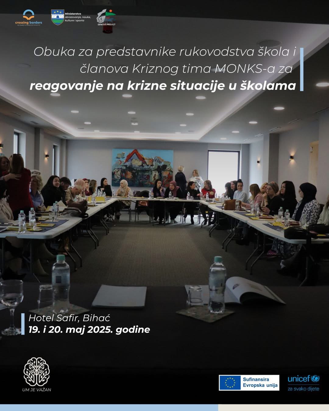 Ovaj značajan događaj dio je projekta “UM JE VAŽAN”, koji realizuje Humanitarna organizacija Genesis Project u partnerstvu s Ministarstvom obrazovanja USK, organizacijom Crossing Borders i UNICEF-om BiH, uz sufinansiranje Evropske unije u Bosni i Hercegovini.