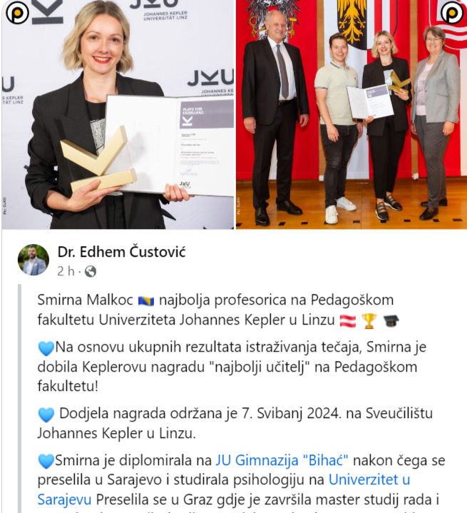 Čestitamo Smirni na ovom zasluženom priznanju! Njezina posvećenost i stručnost donose još jednu nagradu u ruke ponosne Bosanske u akademskim krugovima.