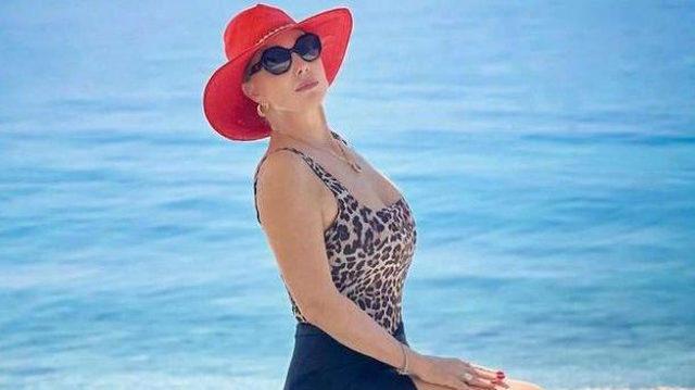 Brena je za tu priliku odabrala kupaći kostim leopard dezena, nosila je crnu suknju i naočale iste boje, a sve je upotpunila crvenim šeširom.