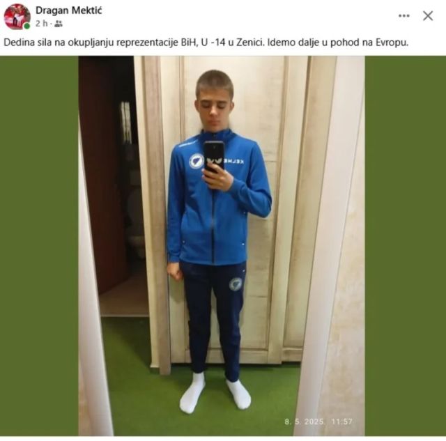 Mektić je putem Facebook profila na društvenim mrežama objavio fotografiju unuka u opremi fudbalske reprezentacije BiH i izrazio ponos što je dio mladih selekcija Zmajeva.