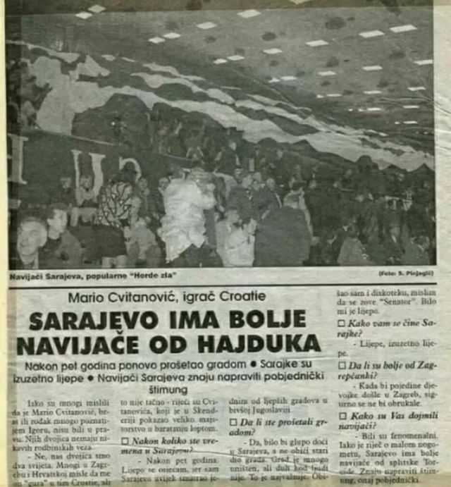 “Bili su fenomenalni. Iako je riječ o malom nogometu, Sarajevo ima bolje navijače od splitske Torcide. Znaju napraviti štimung, onaj pobjednički”, govorio je Cvitanović prije skoro tri decenije.