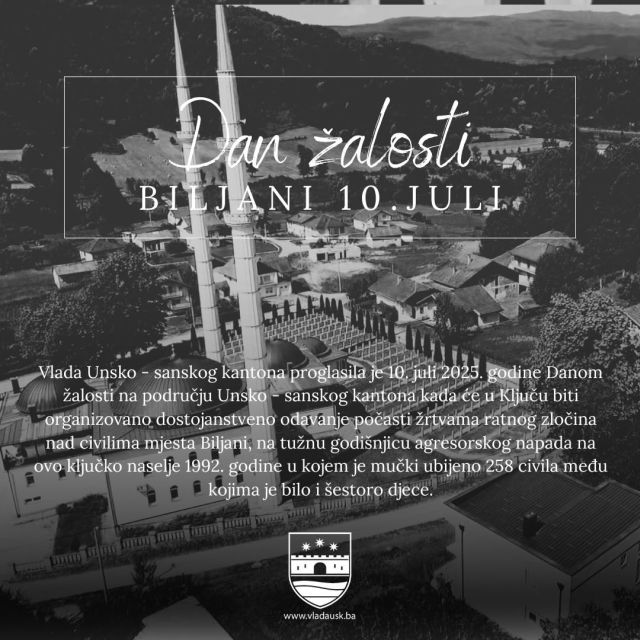 Vlada Unsko – sanskog kantona proglasila je 10. juli 2025. godine Danom žalosti na području Unsko – sanskog kantona kada će u Ključu biti organizovano dostojanstveno odavanje počasti žrtvama ratnog zločina nad civilima mjesta Biljani, na tužnu godišnjicu agresorskog napada na ovo ključko naselje 1992. godine u kojem je mučki ubijeno 258 civila među kojima je bilo i šestoro djece.