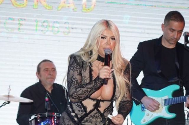 Srbijanska pjevačica Dara Bubamara nastupala je u jednom restoranu u Beogradu, gdje se pojavila se u crnom kombinezonu od čipke, koji se potpuno providio i istakao sve njene atribute.