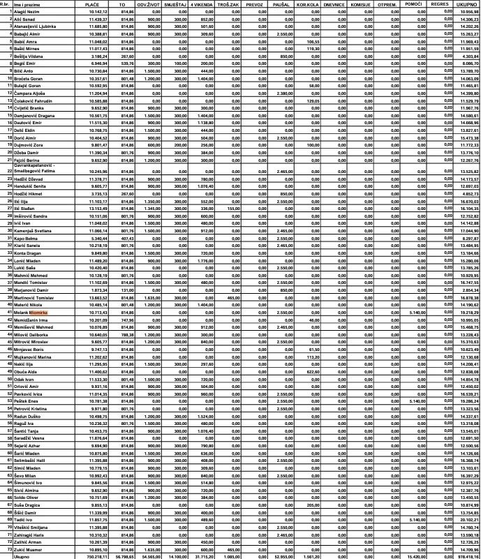 Po nekoliko delegata je naplatilo više od 19.000 KM. Na drugom mjestu je delegat Enes Peštek (SBiH). On je naplatio 19.286 KM, a na trećem Miomirka Melank (Naša stranka) koja je naplatila 19.218 KM.