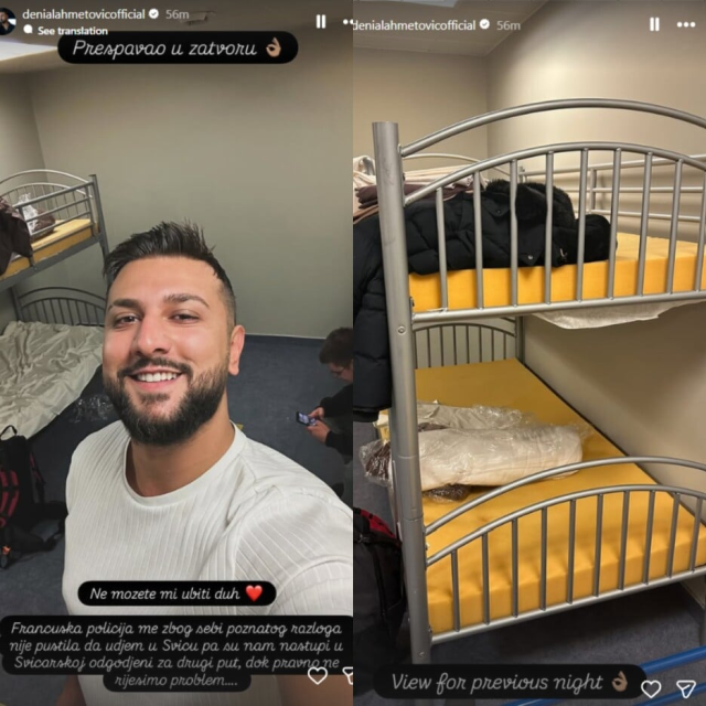 Naime, pjevač je na Storyju objavio fotografije iz pritvorske ćelije gdje je napisao: “Francuska policija me, zbog sebi poznatog razloga, nije pustila da uđem u Švicarsku, pa su nam nastupi u Švicarskoj odgođeni za drugi put, dok pravno ne riješimo problem”.