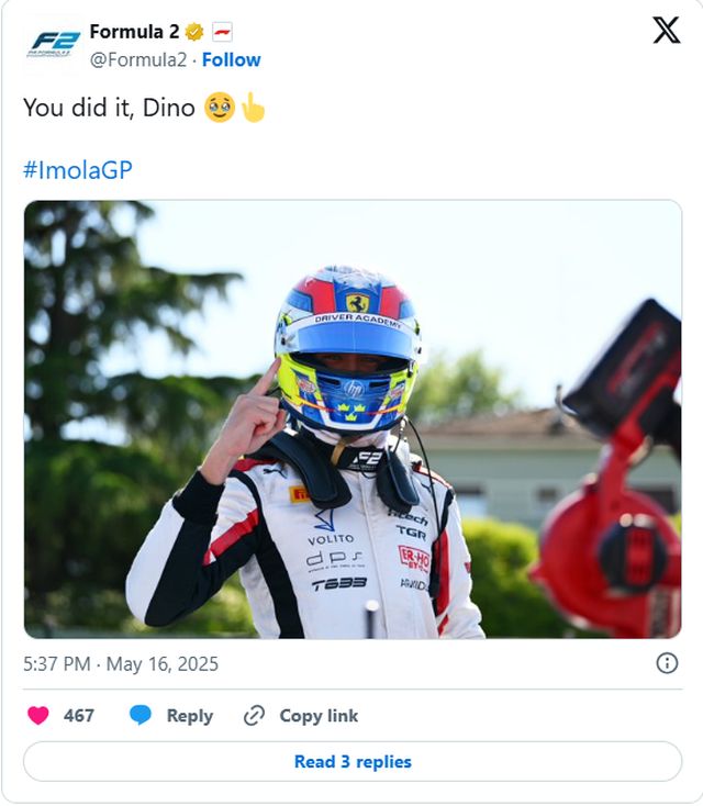 Dino Beganović, mladi vozač švedske licence i bh. korijena, briljirao je na stazi u Imoli i u dramatičnom finišu kvalifikacija došao do svoje prve pole pozicije u Formuli 2.