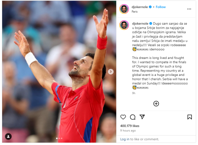 Velika je čast i privilegija da predstavljam našu zemlju! Srbija će imati medalju u nedjelju! – poručio je Đoković.