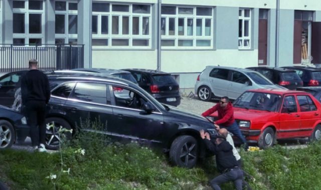 Na sreću, nekoliko prolaznika odmah je reagovalo i priskočilo u pomoć vlasniku, pomažući mu da izvuče vozilo nazad na put.