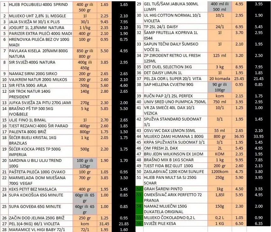 – Listu smo korigovali u odnosu na raniji period, uvrstili smo još nekoliko artikala i vjerujemo da ćemo na ovaj način doprinijeli kvaliteti življenja svih, a posebno osjetljivih kategorija stranovništva poput penzionera i radnika sa nižim primanjima – saopćili su iz Udruženja poslodavaca FBiH.