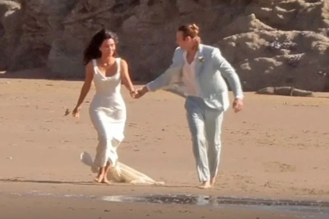 Kardashian, koja preuzima glavnu ulogu u seriji “All's Fair”, snimljena je ove sedmice u vjenčanici na plaži u Malibuu. Fotografisana je dok se ljubi s modelom i glumcem filma “No Hard Feelings” Matthewom Noszkom (32) tokom scena vjenčanja.