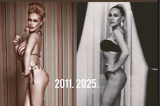 Naime, pjevačica je na svom Instagram Storyju objavila dvije fotografije – jednu iz 2011. godine, na kojoj pozira u kupaćem kostimu ispred šarenih zidnih tapeta i drugu crno-bijelu fotografiju iz 2025. godine, gdje je pozirala u sličnoj pozi. Pjevačica je objavom istakla kako i danas zadržava savršenu figuru, potvrđujući da su godine samo broj.
