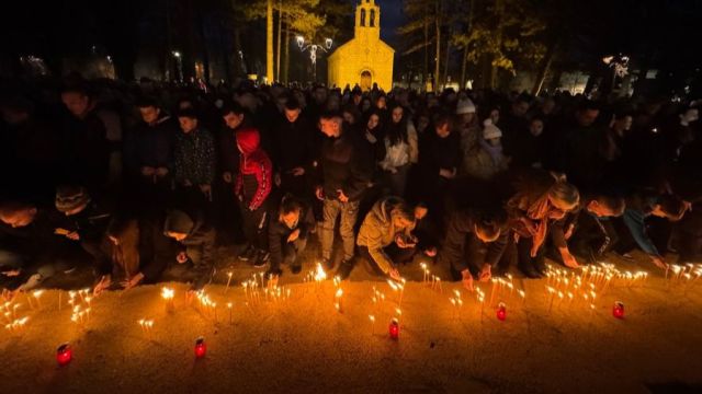 Veliki broj građana Cetinja okupilo se večeras da odaju počast stradalima.