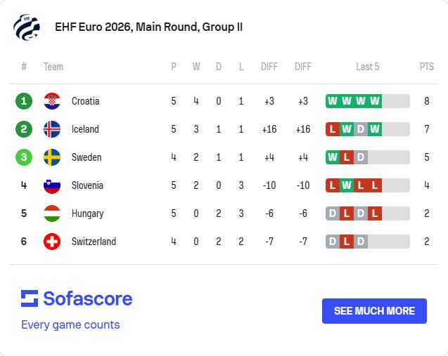 Plasman na prvu poziciju znači da su Hrvati u polufinalu vjerovatno izbjegli selekciju Danske koja će po svemu sudeći biti prva u grupi I što znači da se te dvije selekcije mogu sastati tek u finalu.