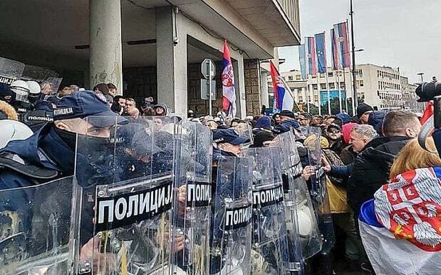 Građani gađaju policiju ispred Skupštine Novog Sada jajima i guraju se sa njima.#NoviSad pic.twitter.com/0rlhbZ6RX0