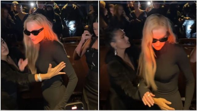 Glumice Nikol Kidman (Nicole, 57) i Salma Hajek (Hayek, 58) privukle su pažnju na Sedmicu mode u Parizu kada su snimljene u očiglednom okršaju na crvenom tepihu tokom revije Balenciage.