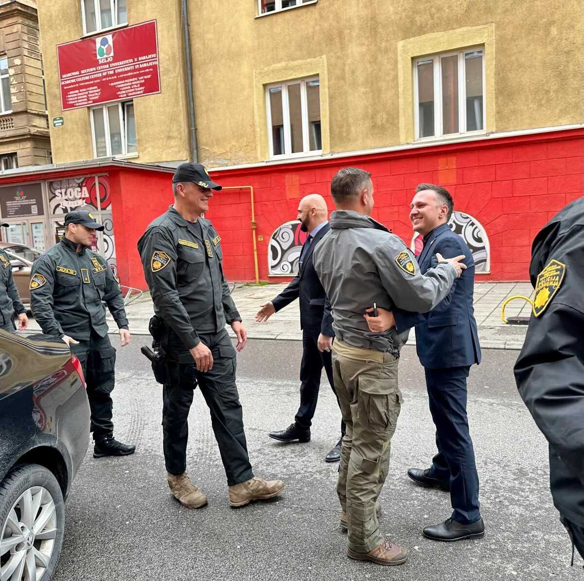 Prilikom dolaska u prostorije FUP-a Munjića i Selmanovića je dočekao federalni ministar unutrašnjih poslova Ramo Isak.