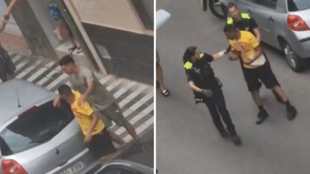 Momento en el que la policía llega para separar la pelea del padre de Lamine Yamal con sus vecinos