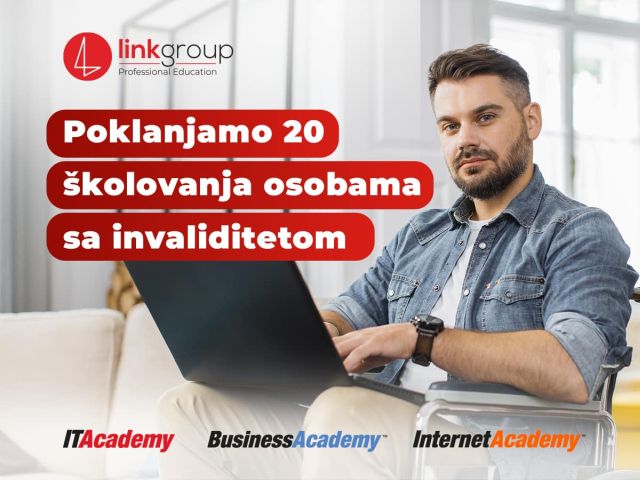 Kompanija LINK group Professional Education, kao društveno odgovorna kompanija, svake godine pruža mogućnost osobama sa invaliditetom da besplatno pohađaju njene online obrazovne programe putem Platforme za učenje na daljinu.