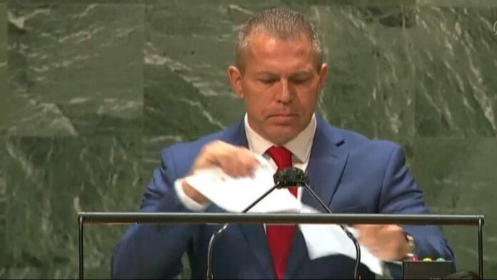 Gilad Erdan, izraelski ambasador, na sastanku je optužio Iran za kršenje međunarodnog prava.
