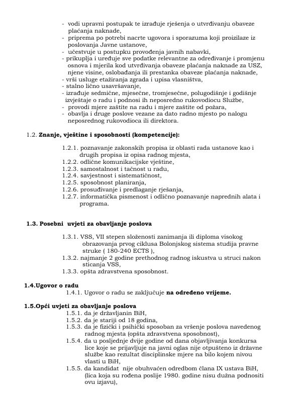 Viši samostalni referent za pravne i opće poslove – 1 izvršilac