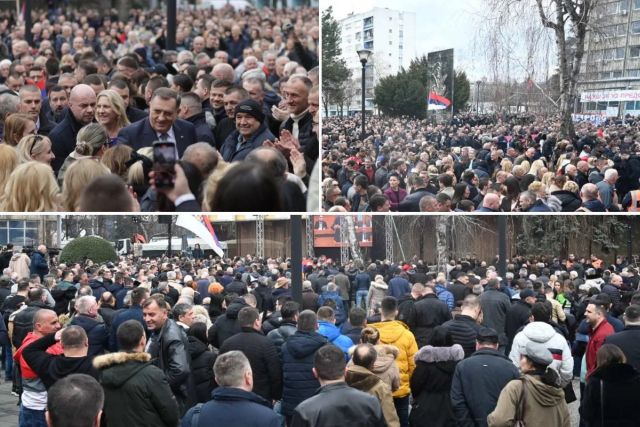 Nešto ranije, kada je Željka Cvijanović, predsjedavajuća Predsjedništva BiH, saopštila da je Miloš Lučić, v.d. Službenog glasnika Republike Srpske, oslobođen, okupljeni građani su to pozdravili aplauzom.