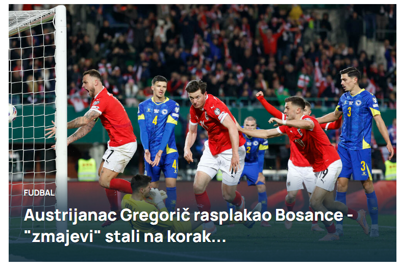 Kada su u pitanju regionalni mediji, može se reći da mnogi žale za tim što je Michael Gregoritsch postigao gol za 1:1 u 77. minuti i tako rastužio cijelu Bosnu i Hercegovinu.