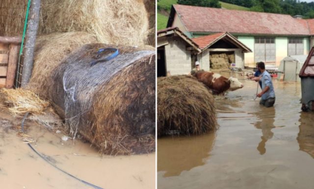 “Ostala goveda su u izdignutoj štali pa njih nisam morao spašavati, ova su bila u objektu koji je nešto niže. Voda mi je odnijela i dvadesetak rolo bala sijena 200 metara od kuće, a ovo što je ostalo je otkriveno, pokislo, sve je bilo u vodi”, prepričava nam dramatično jutro na svom imanju ovaj poljoprivrednik, poznatiji kao Ahmo.