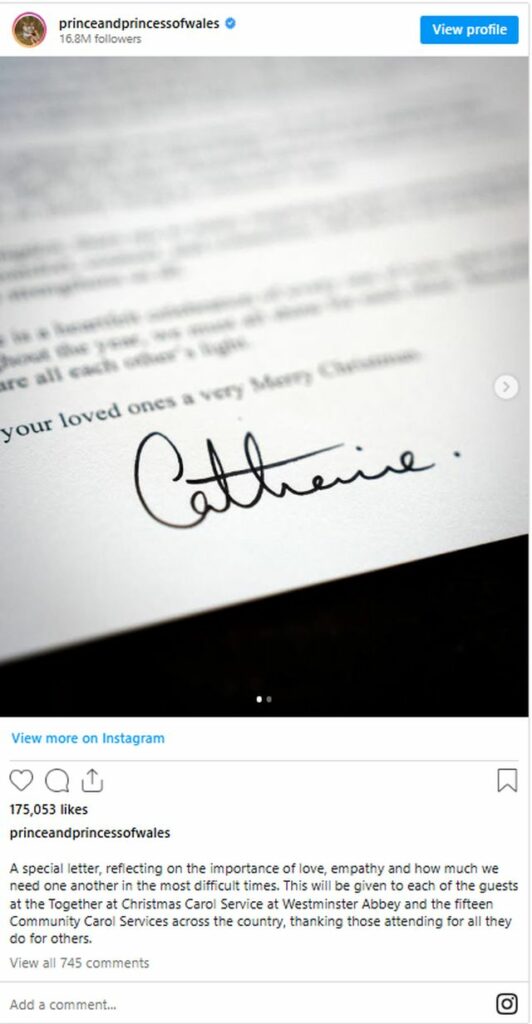 Ovo je prvi put od kada je Kejt Midlton pokrenula organizaciju božićnih koncerata “Zajedno za Božić” 2021. godine, da je napisala pismo pozvanima.