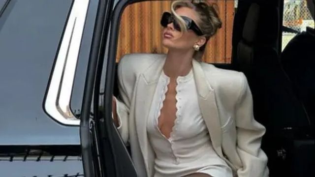 Zablistala je u haljini otvorenih ramena i s plaštem. Outfit je upotpunila nakitom, kosu je raspustila i blago uvila, a što se make-upa tiče, istaknula je usne crvenim ružem.