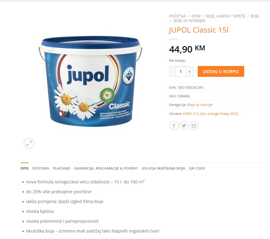 Cijena kante Jupola (15 litara): od 37,50 do 44,90 KM