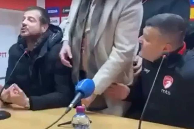 Sve je nastavljeno i nakon utakmice, a pred konferenciju za medije, kada je došlo do naguravanja, a čuje se kako Lalatović psuje majku Dudiću.