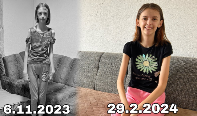 Nekon humanitarne akcije Evresa je otišla u Tursku na liječenje i sad je hvala Bogu puno bolje, sad ima 48 kilograma i razlika se vidi.