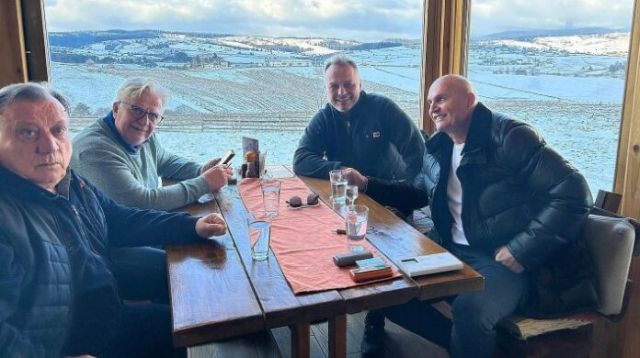 “Evo nas na Nišićkoj visoravni. Burek, sirnica, krompiruša pred nama… Mili se odmara na Jahorini pa je malo sišao do nas”, rekao je Peca za Raport.