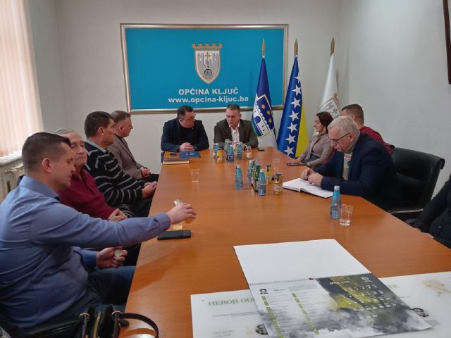 KLJUČ, 17. januara – Zajedno sa načelnikom Jasminom Musićem, u gradskoj upravi je održan sastanak sa direktorima škola, koji su preuzeli panoe vezano za inicijativu Memorijalnog centra Sarajevo.