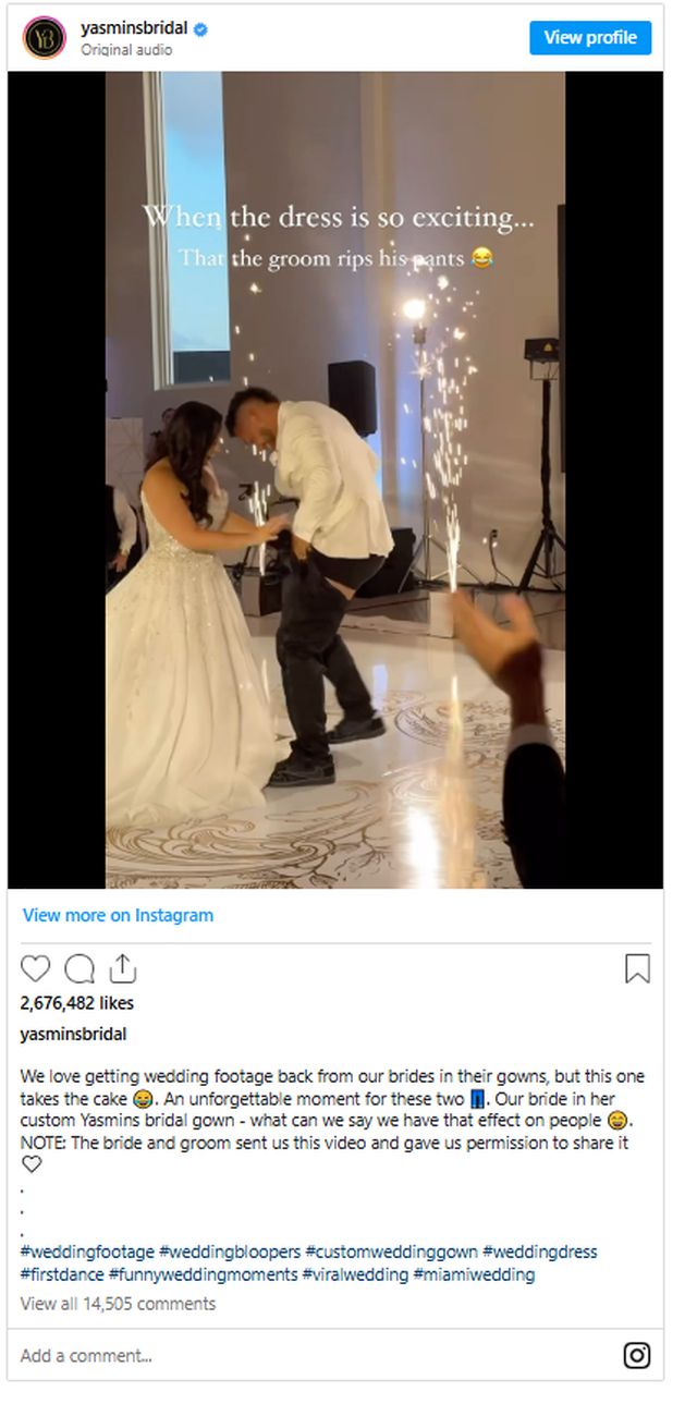 Američki salon za vjenčanice objavio je na Instagramu viralan snimak s vjenčanja njihovih klijenata koji je nasmijala mnoge.