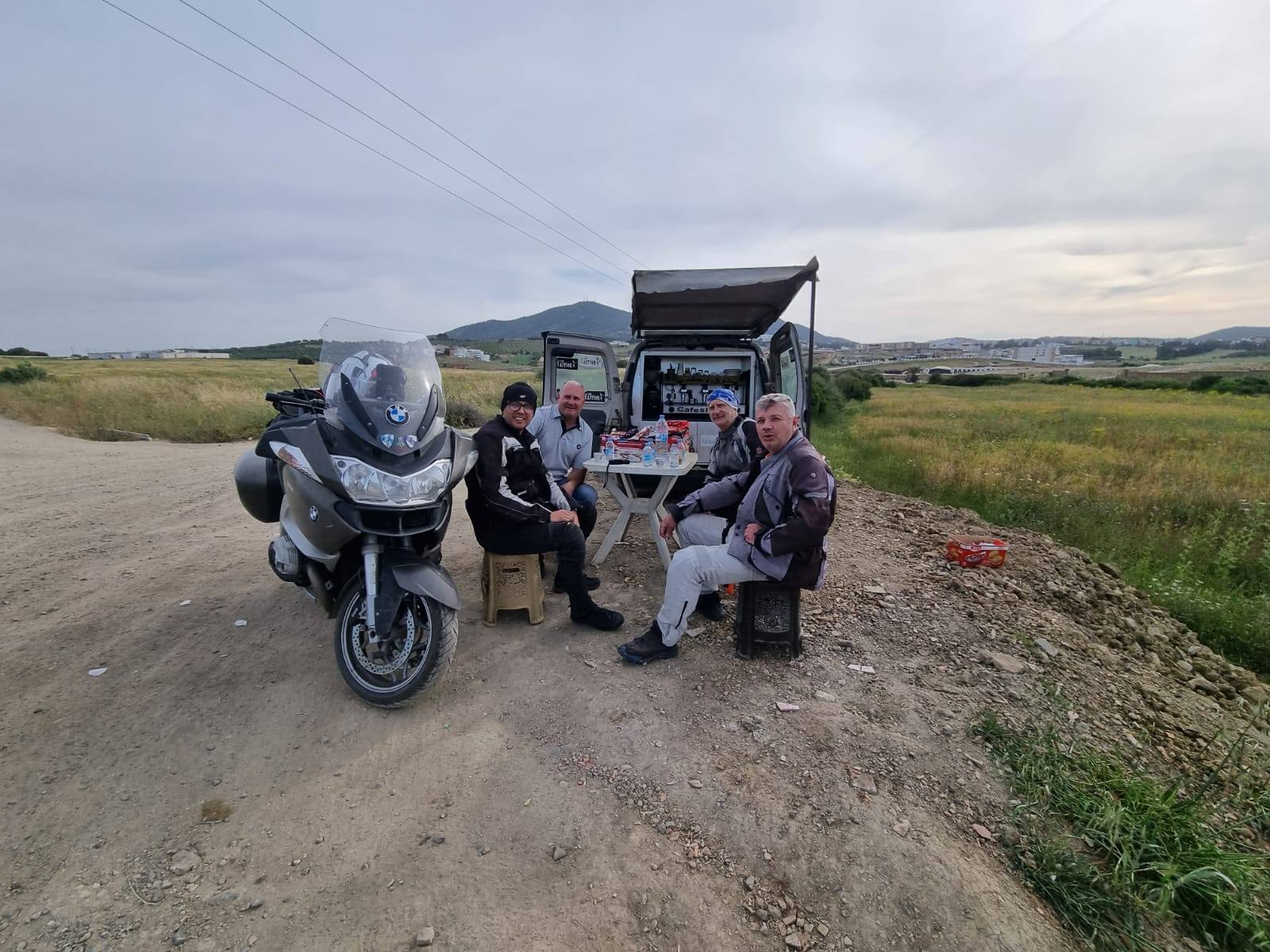 Putovanje je počelo ispraćajem prijatelja i nervozom zbog neodobrenih viza za Mauritaniju i Senegal. Prvi dan prošli su 847 km do Genove. Tamo ih je dočekala italijanska gužva, premaleni smještaj i razočaravajuća pica – ali i ogromna želja. U luci Genova ukrcali su se na trajekt. Sljedeća destinacija: Tanger, Maroko. 53 sata plovidbe s još 400 bajkera, kabine bez prozora i valovi koji ljuljaju san – to je Mediteran iz moto-perspektive.