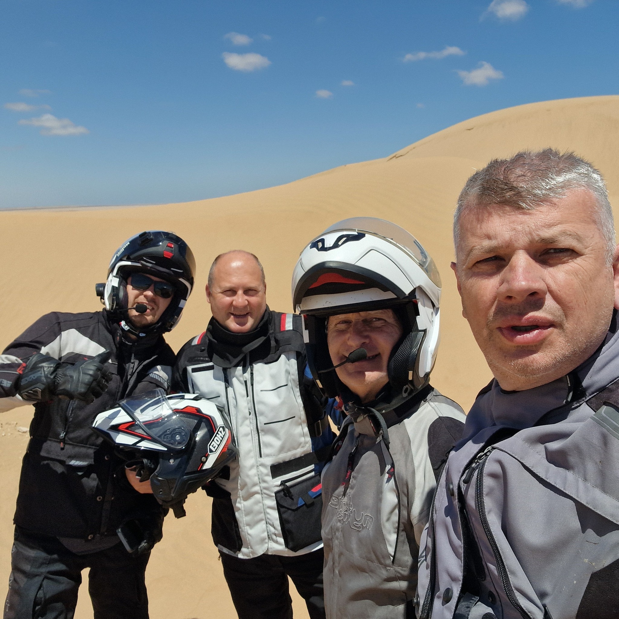 Kreću prema jugu. Put postaje sve prazniji, ljudi sve rjeđi, a vjetar sve jači. Ulaze u Zapadnu Saharu – teritoriju bez jasne međunarodne definicije. Pijesak briše tragove, a vjetrovi pune ceste. Dine prelaze preko asfalta, a motoristi ih vješto zaobilaze. Prvi pravi test za opremu, reflekse i živce.