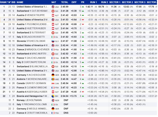 Ukupno su Muzaferija i Alić ostvarile vrijeme 2:54.64, a za pobjednicama su zaostale 13,75 sekundi.