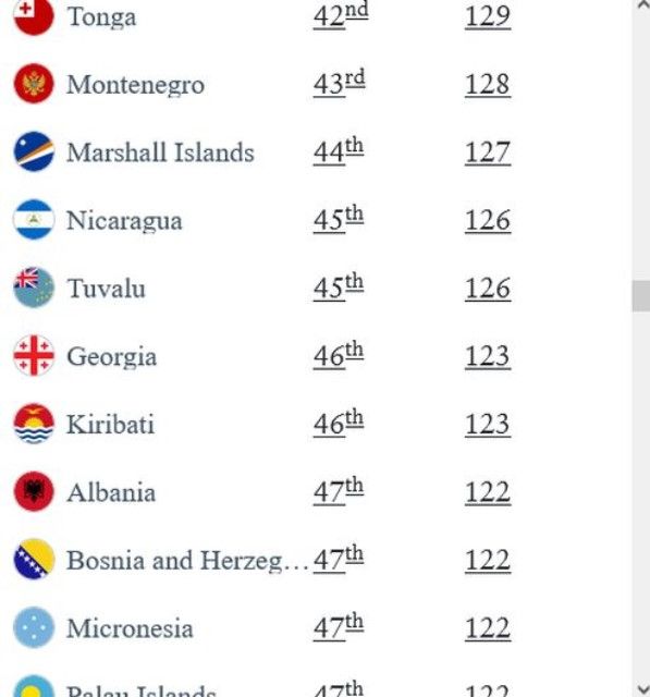 Sjedinjene Američke Države se više ne nalaze među 10 najboljih te su u najnovijoj rang-listi pale na 12. mjesto na kojem su izjednačene s Malezijom. Od susjednih zemalja najmoćniji pasoš ima Hrvatska, koja je na osmom mjestu zajedno s još nekoliko zemalja, dok se Srbija sa 37. pozicije popela na 36., a Crna Gora sa 46. na 43.