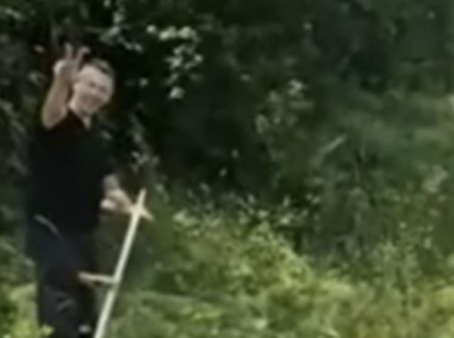 Na videu se vidi kako zajedno s prijateljima kosi travu na livadi, uz prepoznatljivi gest dizanja tri prsta.