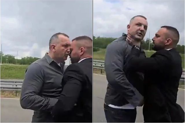 U nastavku snimka može se čuti ženski glas koji tvrdi da je riječ o pratnji iz kabineta predsjednika Vučića, nakon čega dolazi do fizičkog naguravanja između dvojice pripadnika obezbjeđenja.