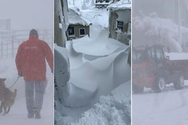 Na društvenim mrežama pojavili su se nevjerovatni snimci s istočnih Alpa, konkretno iz Obertaurna, gdje je snijeg gotovo potpuno zatrpao kuće i doseže do struka. Automobili su u potpunosti prekriveni snijegom.