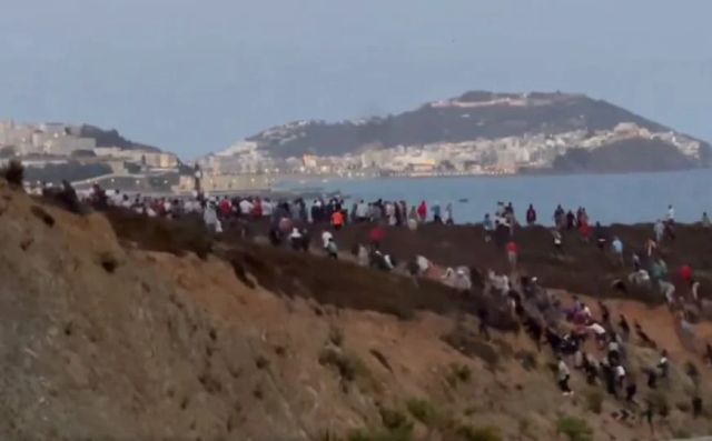 Videosnimka objavljena na internetu prikazuje migrante kako trče preko vrha brda kroz pogranični grad Fnideq, marokanski grad najbliži španskoj eksklavi.