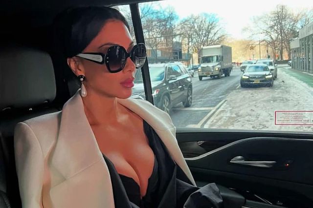 Nosila je kombinezon s napuhanim rukavima i dugi kaput. Izgled je upotpunila podignutom frizurom, sunčanim naočalama, nakitom, torbicom i špicastim štiklama.